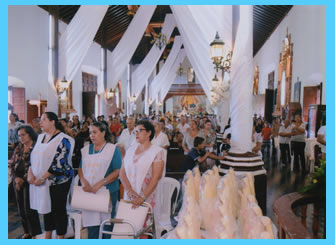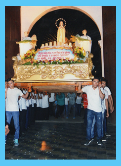 Preparación para la solemne procesión del 13 de Julio del año, y procesión realizada en la Parroquia San Felipe Apostol celebrada por monseñor Bismark Acebedo. Actividad realizada por el Movimiento Sacerdotal Mariano Corzaón Inmaculado de María, todos los años 12 y 13 de Julio.